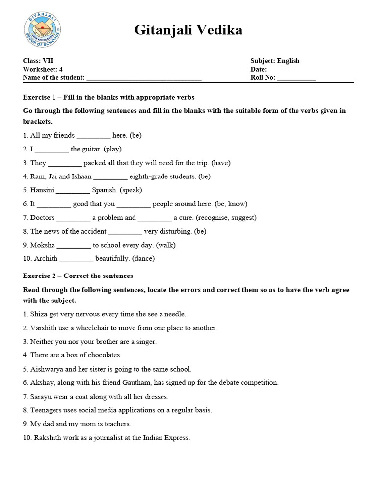 Subject Verb Agreement Worksheet 14 6 2024 PDF Language Arts