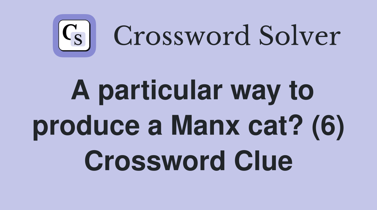 A particular way to produce a Manx cat? (6) Crossword Clue Answers