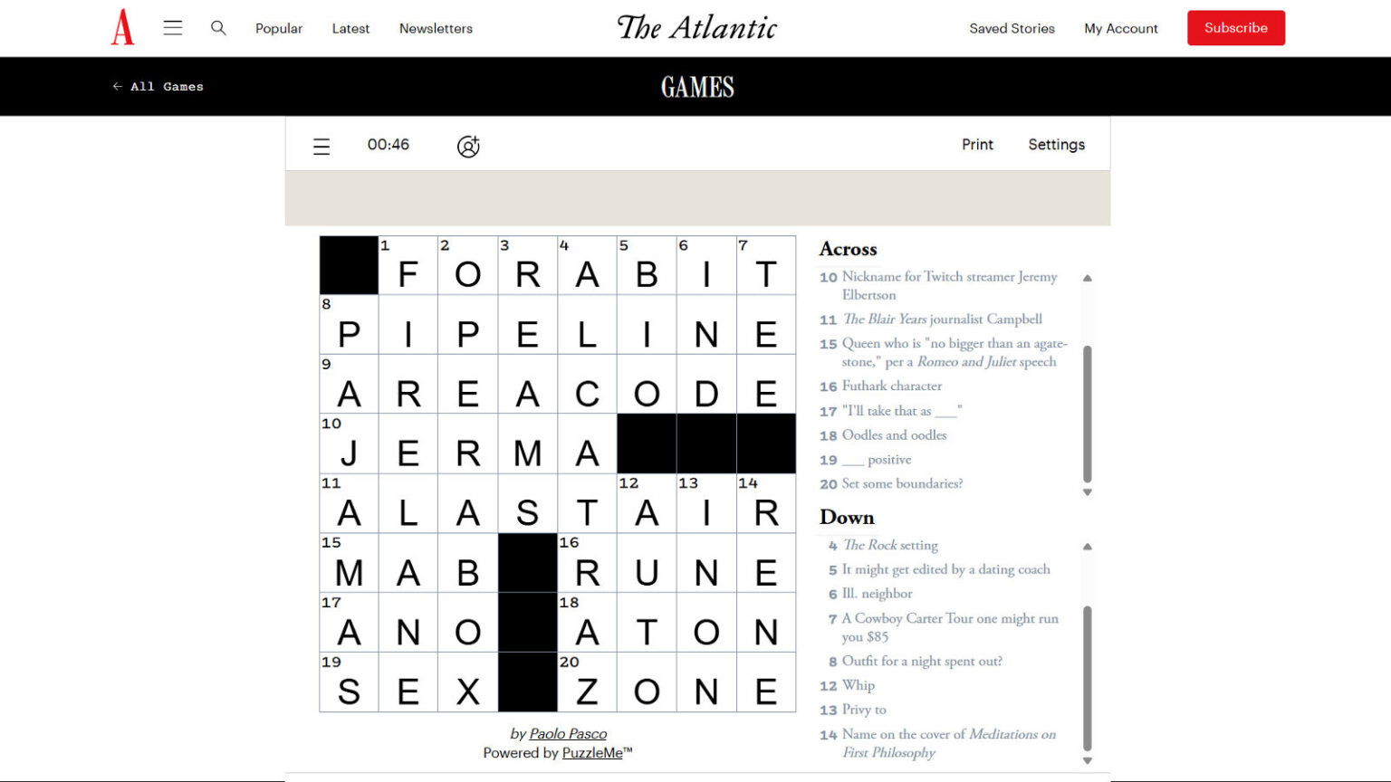 I completed the Sunday NYT crossword puzzle from a couple of weeks ago