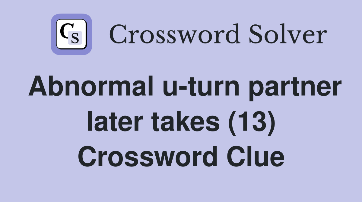 Abnormal u turn partner later takes (13) Crossword Clue Answers