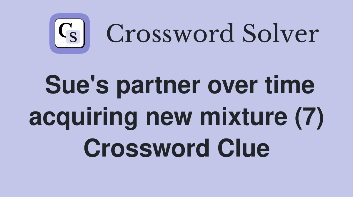 Sue #39 s partner over time acquiring new mixture (7) Crossword Clue