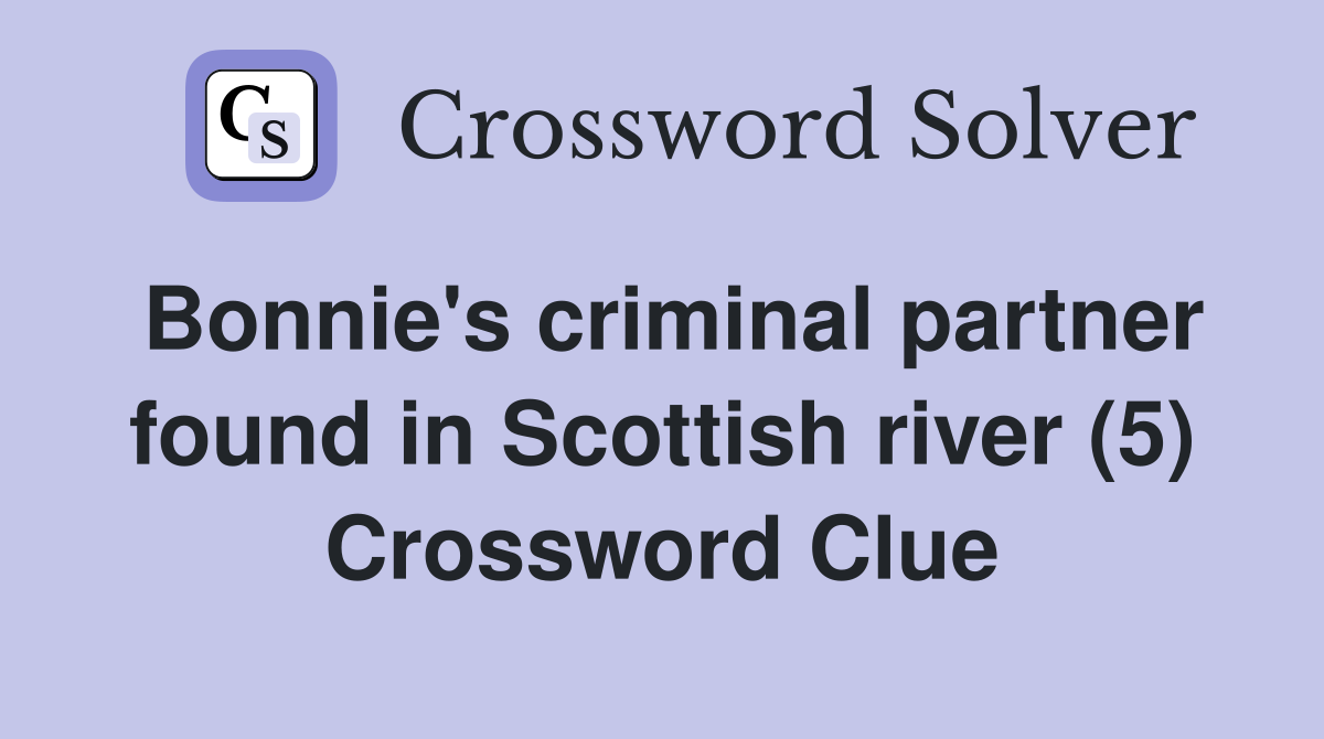 Bonnie #39 s criminal partner found in Scottish river (5) Crossword Clue