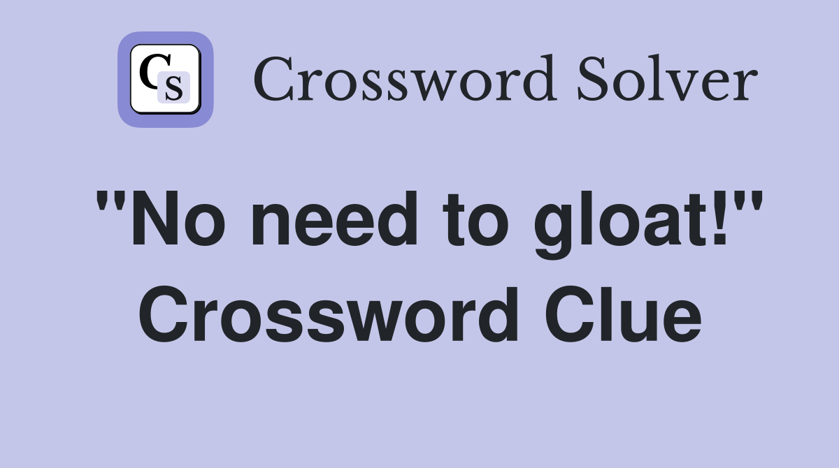 quot No need to gloat quot Crossword Clue Answers Crossword Solver