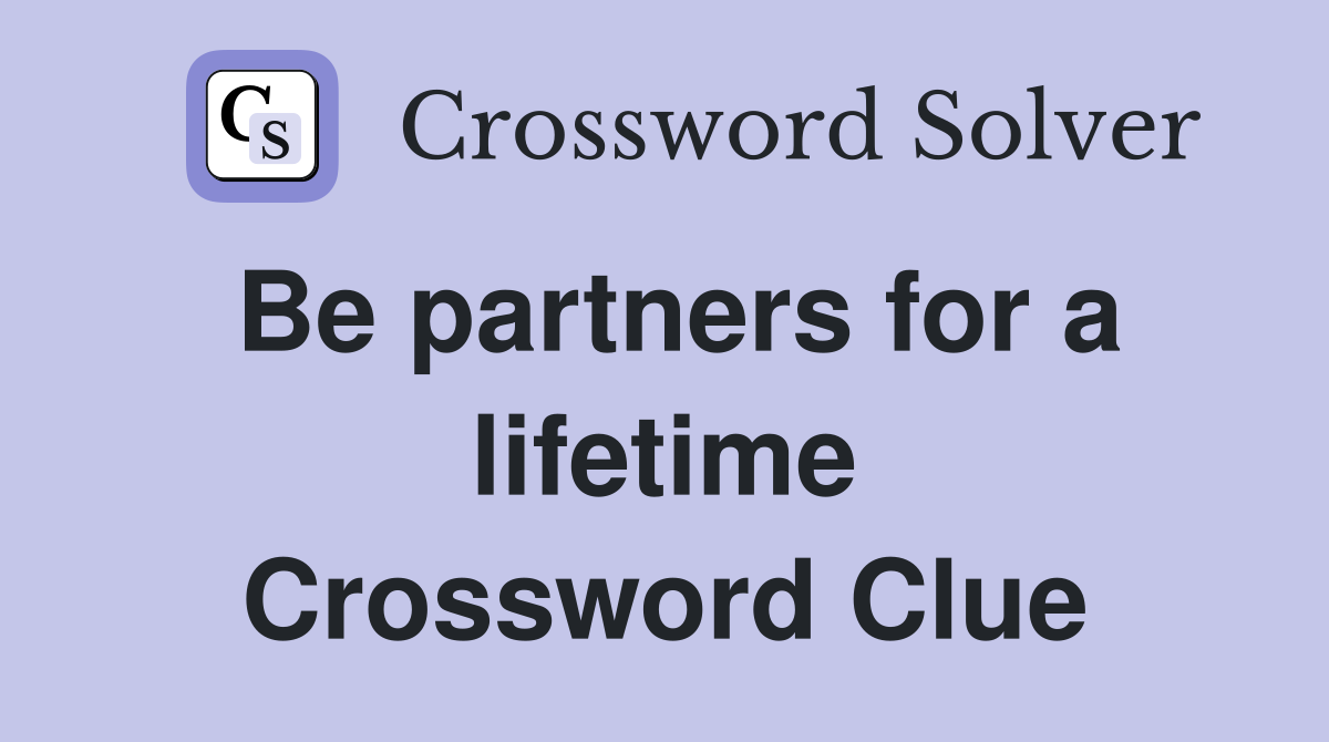 Be partners for a lifetime Crossword Clue Answers Crossword Solver
