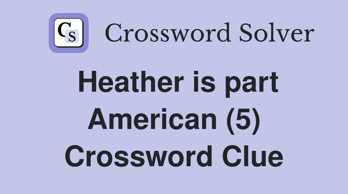 Heather is part American (5) Crossword Clue Answers Crossword Solver