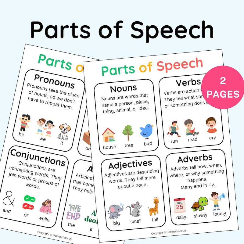 Printable Parts of Speech Chart Home School Chart for Etsy Parts of