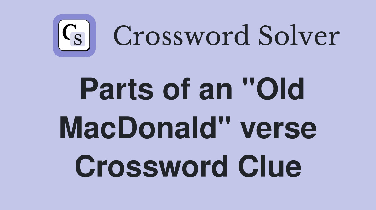 Parts of an quot Old MacDonald quot verse Crossword Clue Answers Crossword
