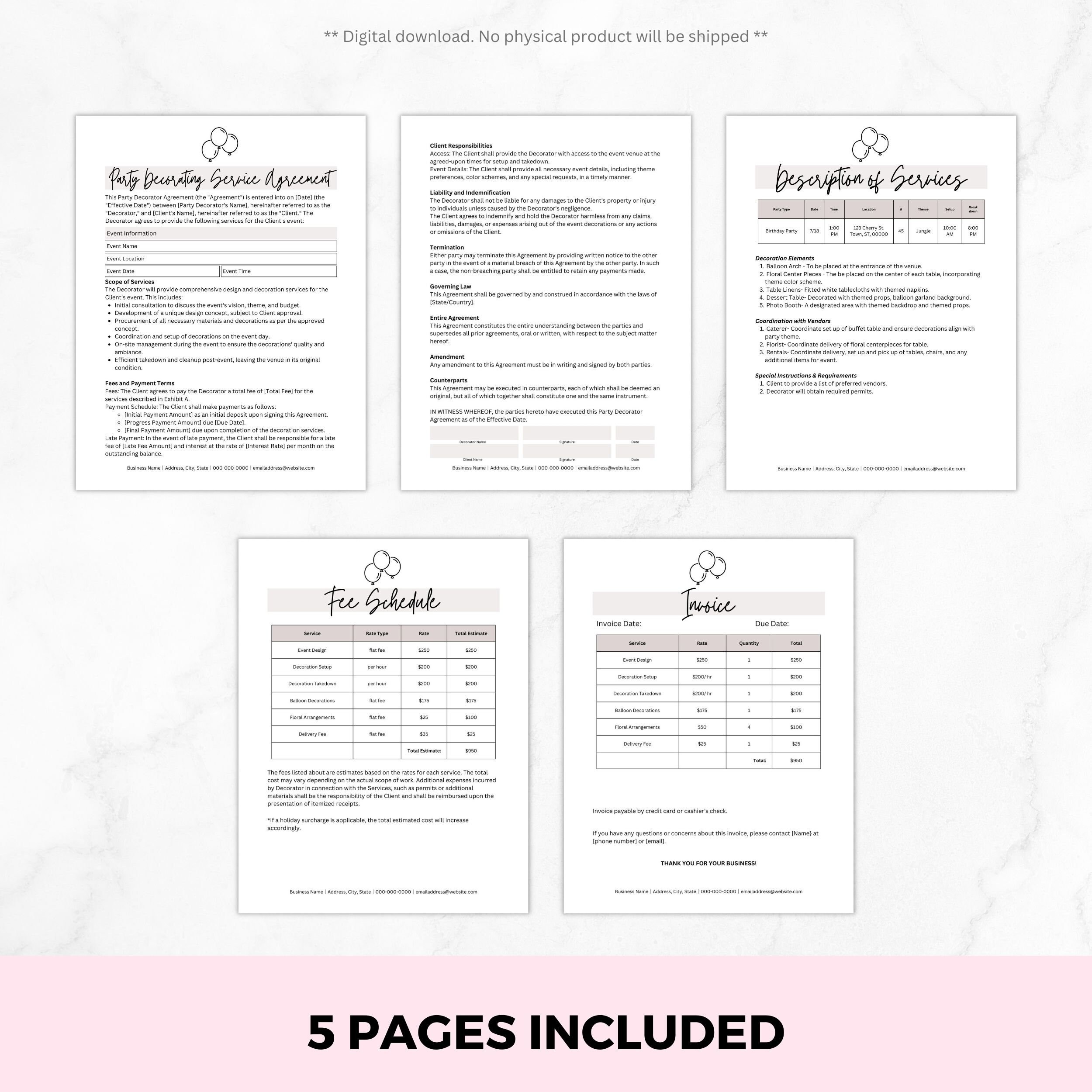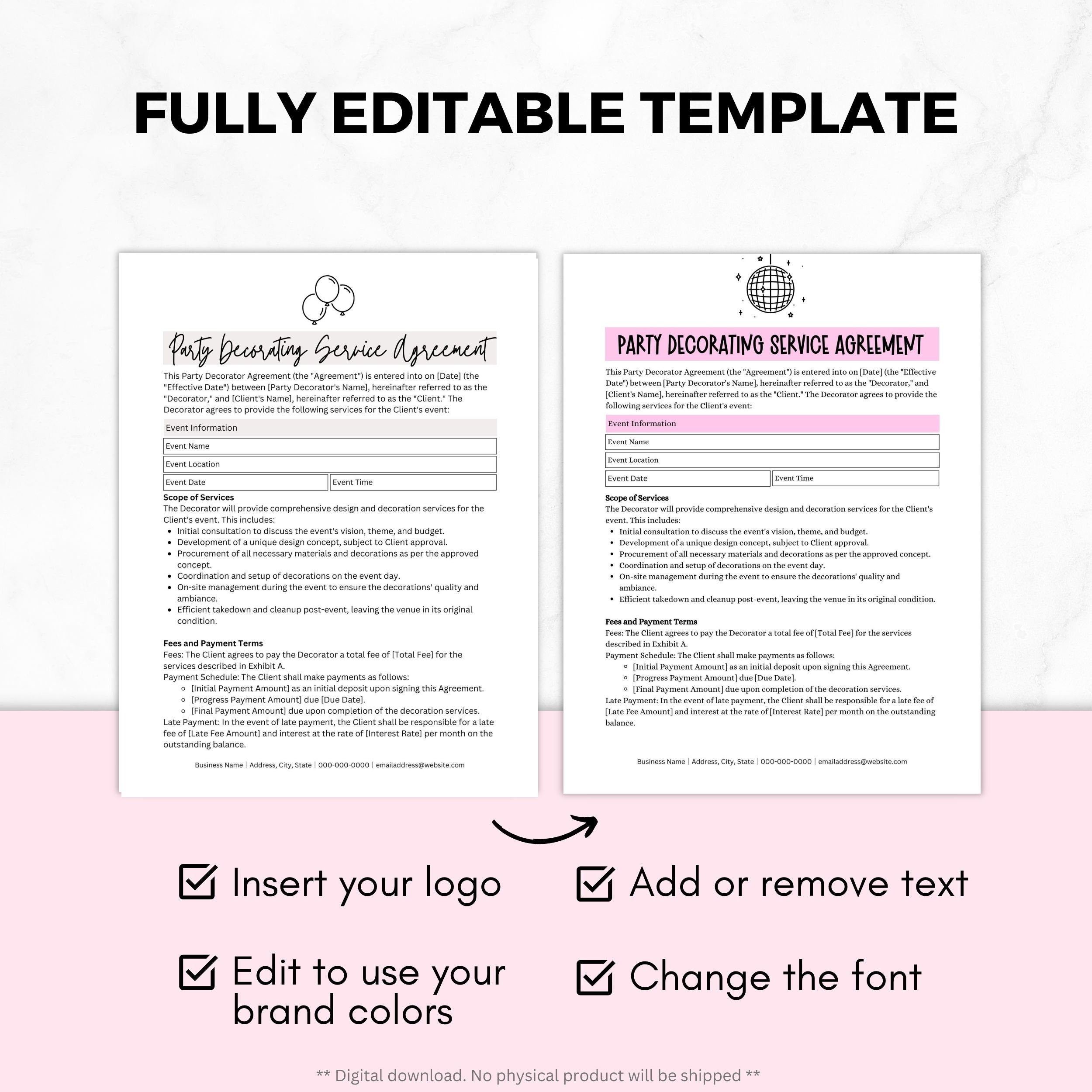 EVENT DECORATOR CONTRACT Template Event Décor Contract Etsy