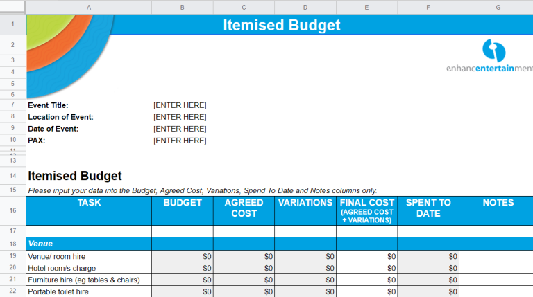 Event Planner Spreadsheet Google Sheets Spreadsheet Template