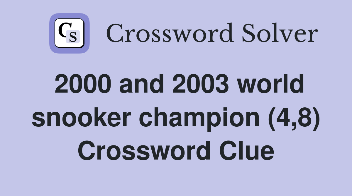 2000 and 2003 world snooker champion (4 8) Crossword Clue Answers