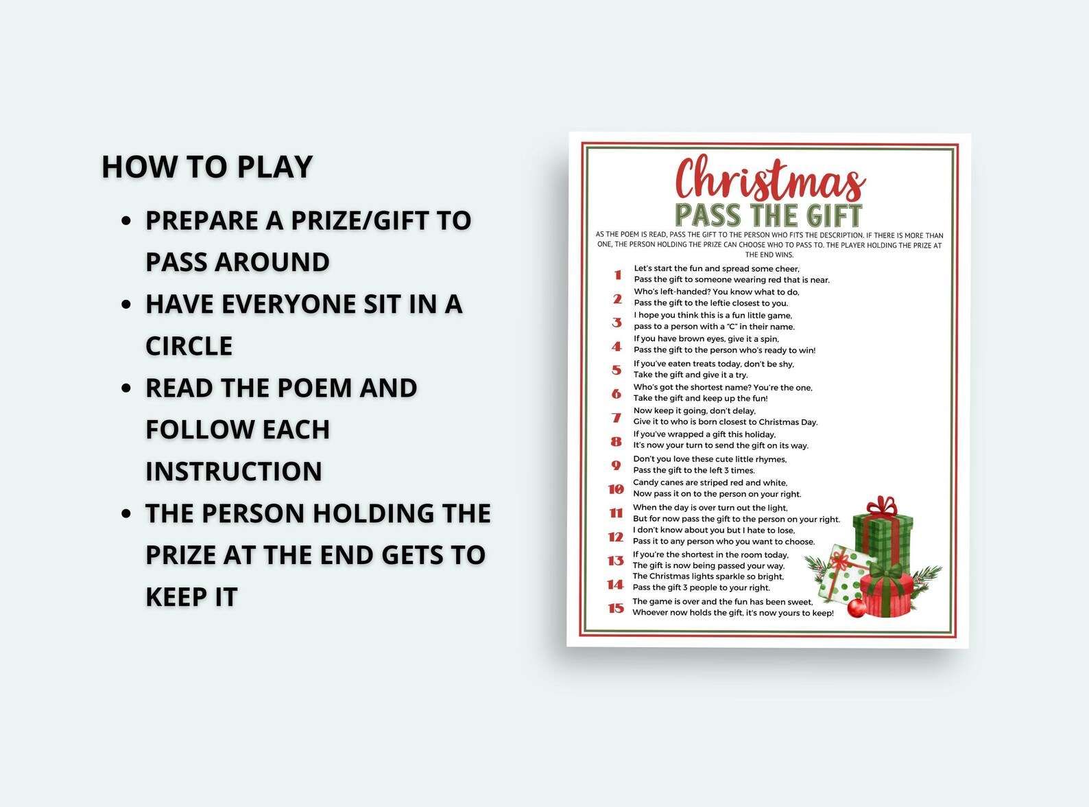 Christmas Pass the Gift Game Printable Pass the Present Holiday Party