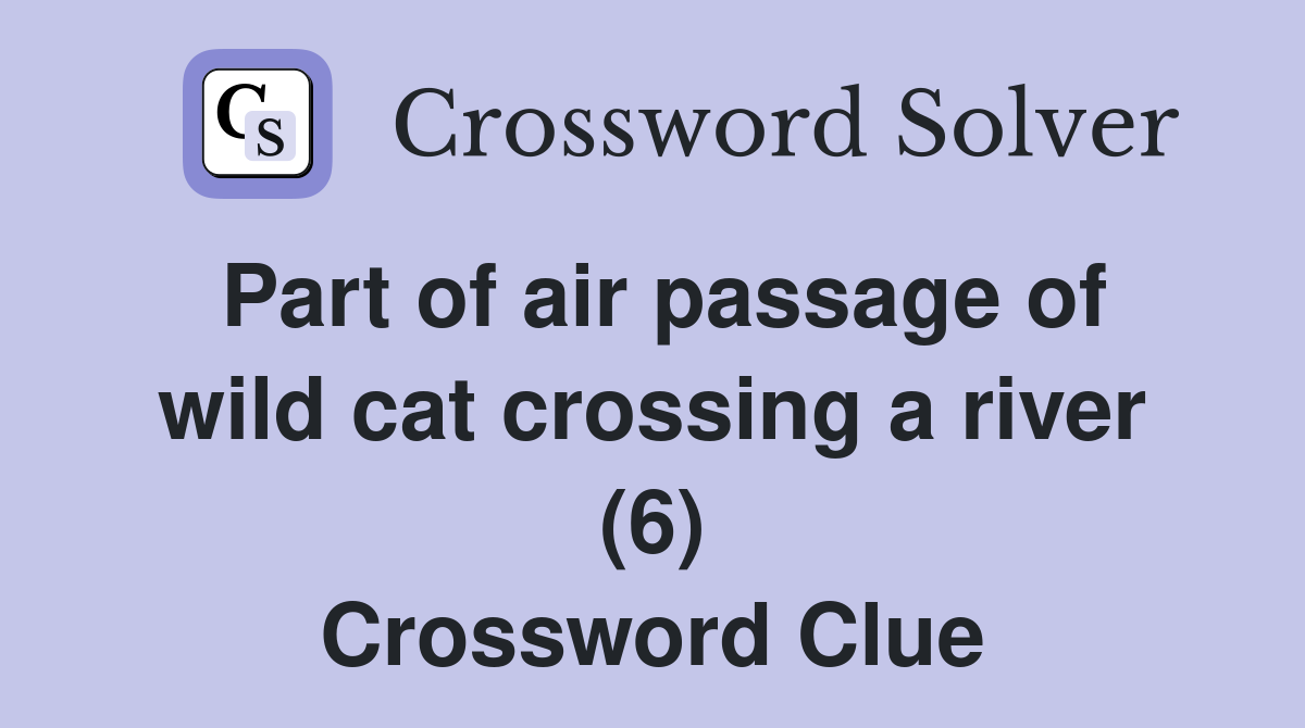 Part of air passage of wild cat crossing a river (6) Crossword Clue