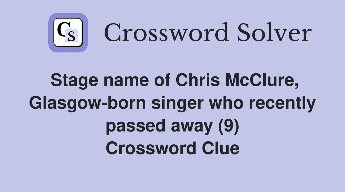 Stage name of Chris McClure Glasgow born singer who recently passed
