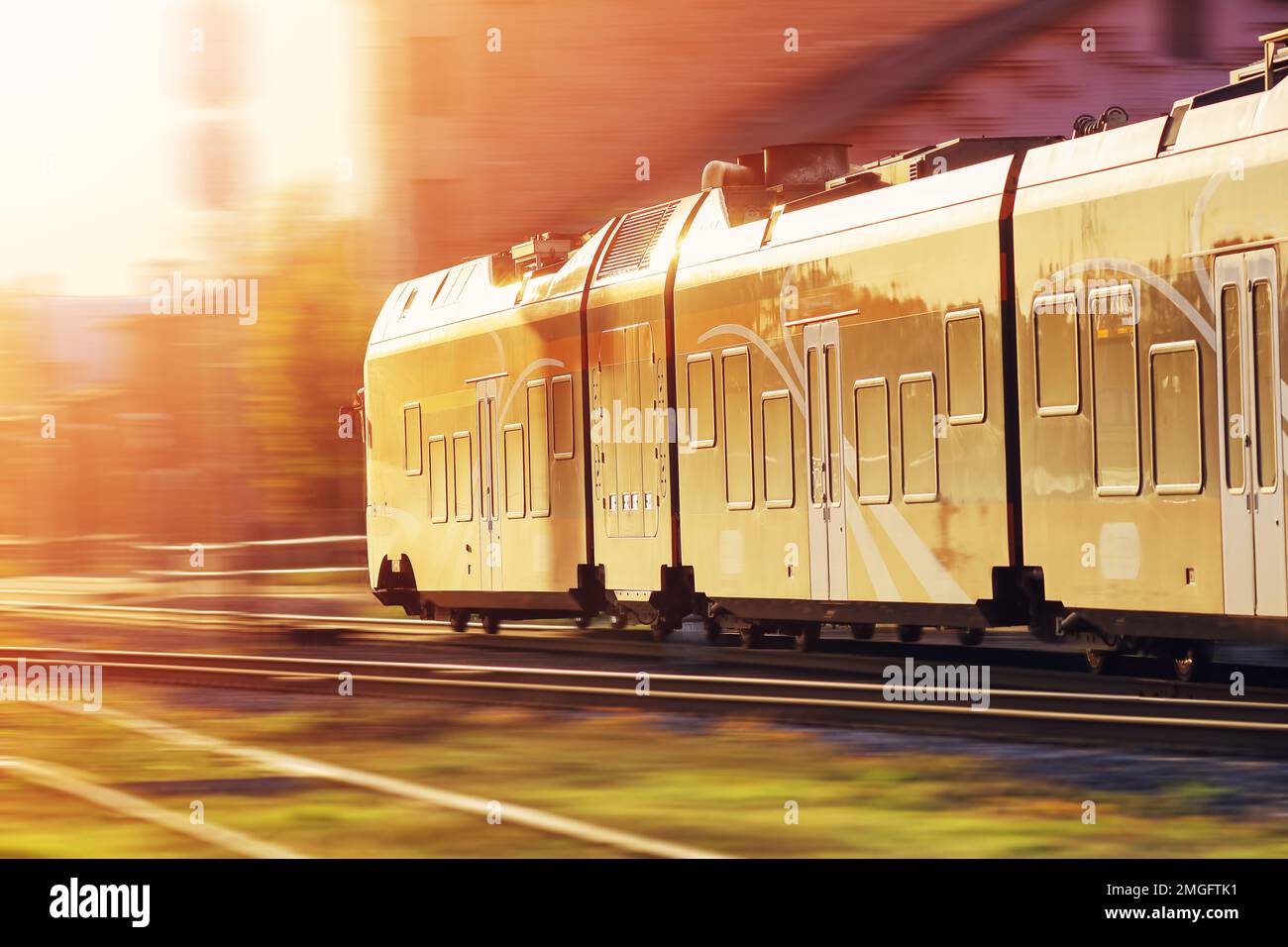 Passenger train moving along railway hi res stock photography and