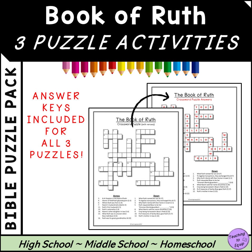Book of Ruth Puzzle Pack Bible Crossword Timeline Triangle Activity