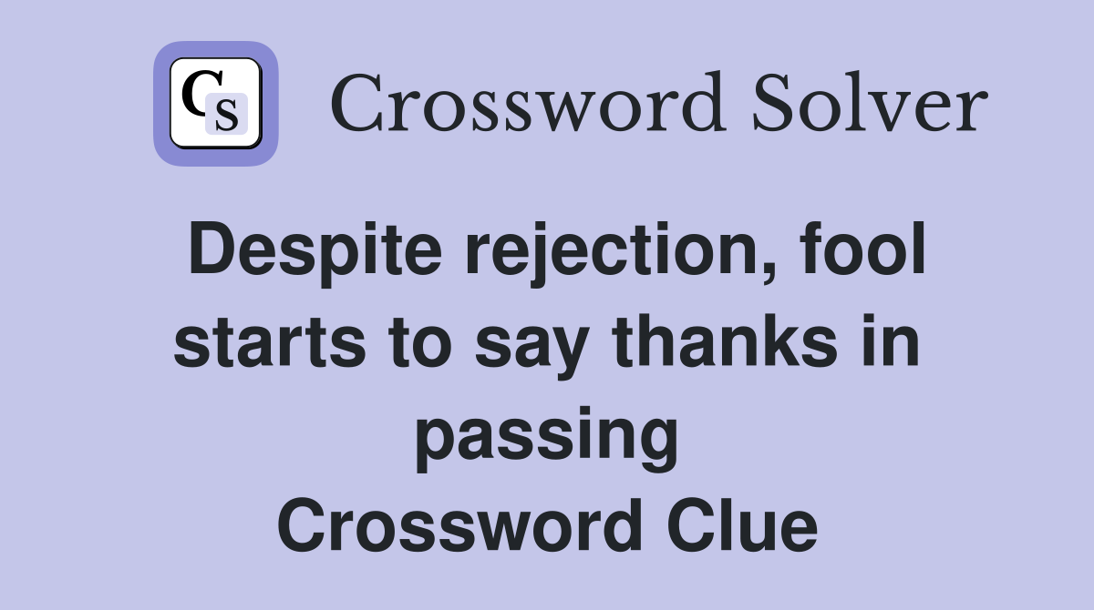 Despite rejection fool starts to say thanks in passing Crossword