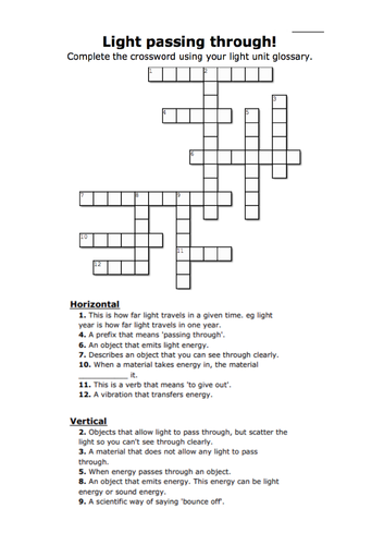 Light passing through (crossword) Teaching Resources