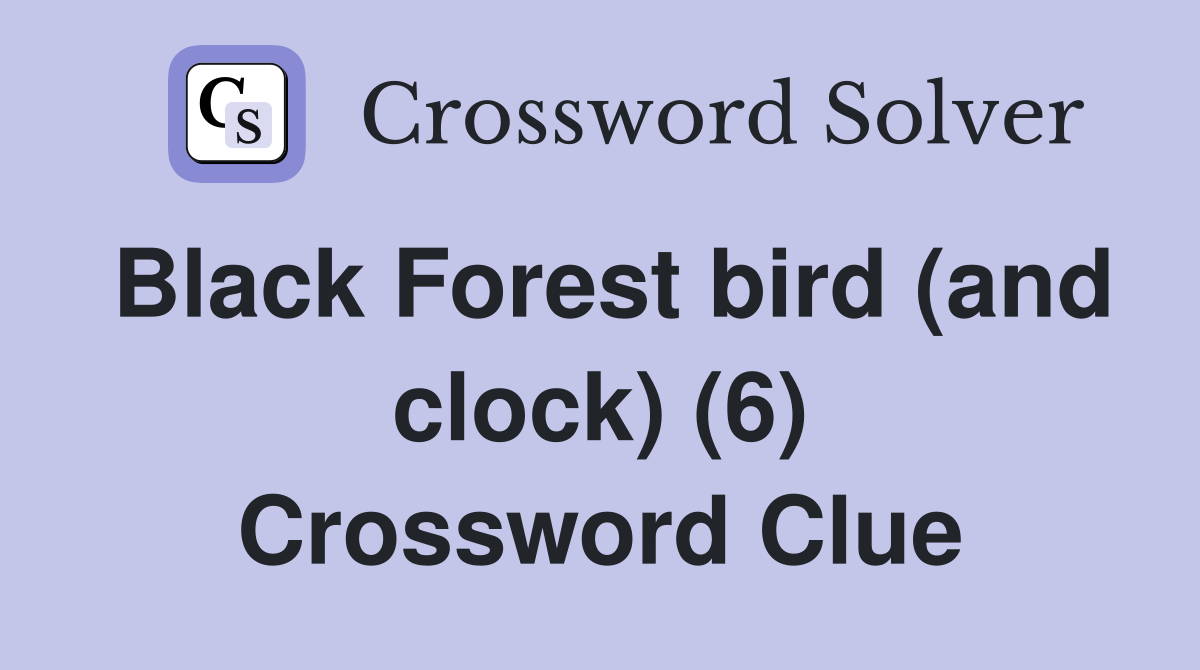Black Forest bird (and clock) (6) Crossword Clue Answers Crossword