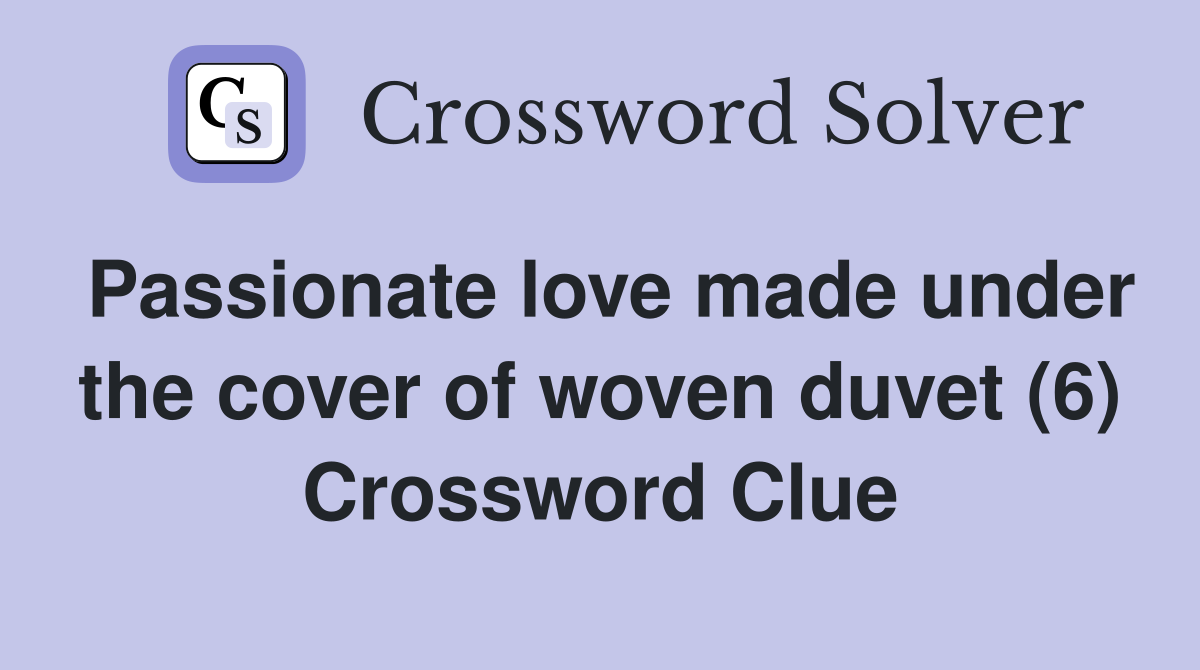 Here are some of the images for Passionate Crossword Clue 5 Letters that we found in our website database.