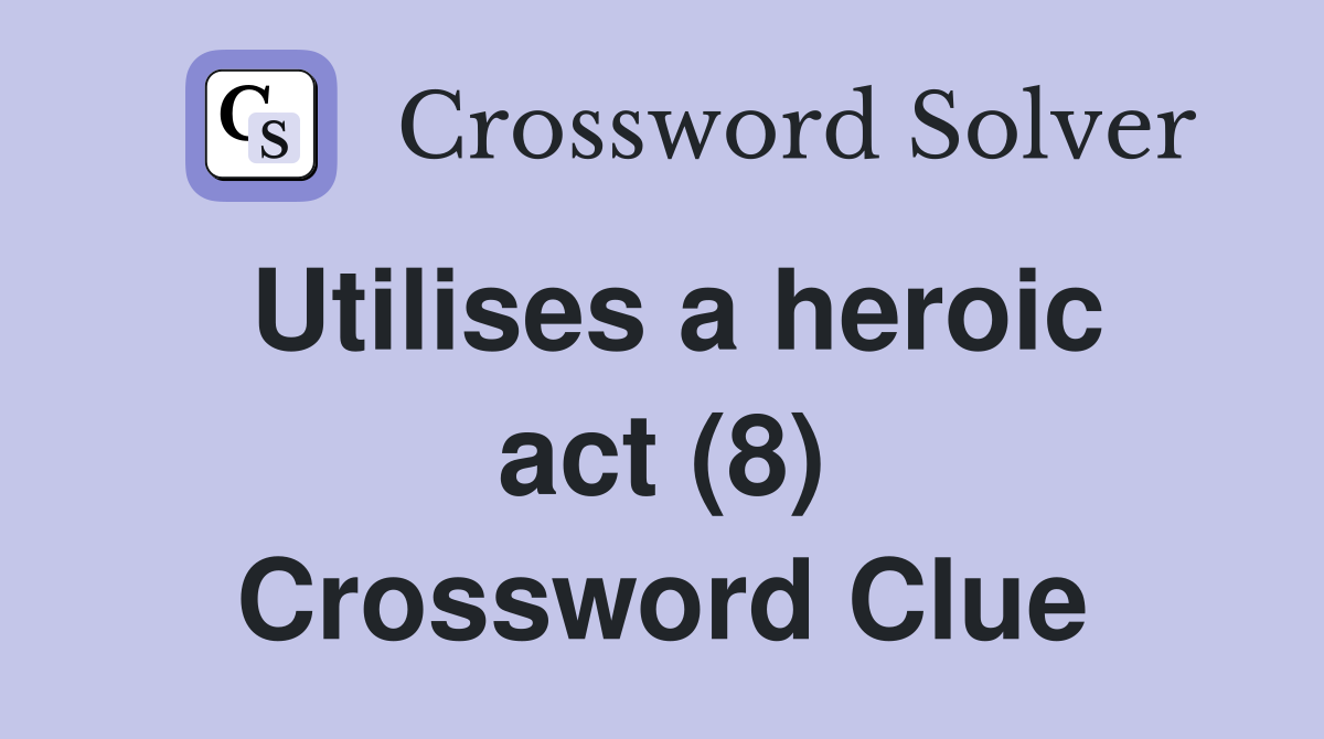 Utilises a heroic act (8) Crossword Clue Answers Crossword Solver