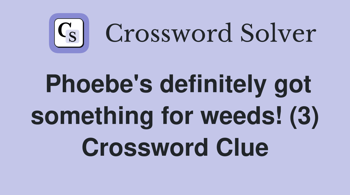 Phoebe #39 s definitely got something for weeds (3) Crossword Clue