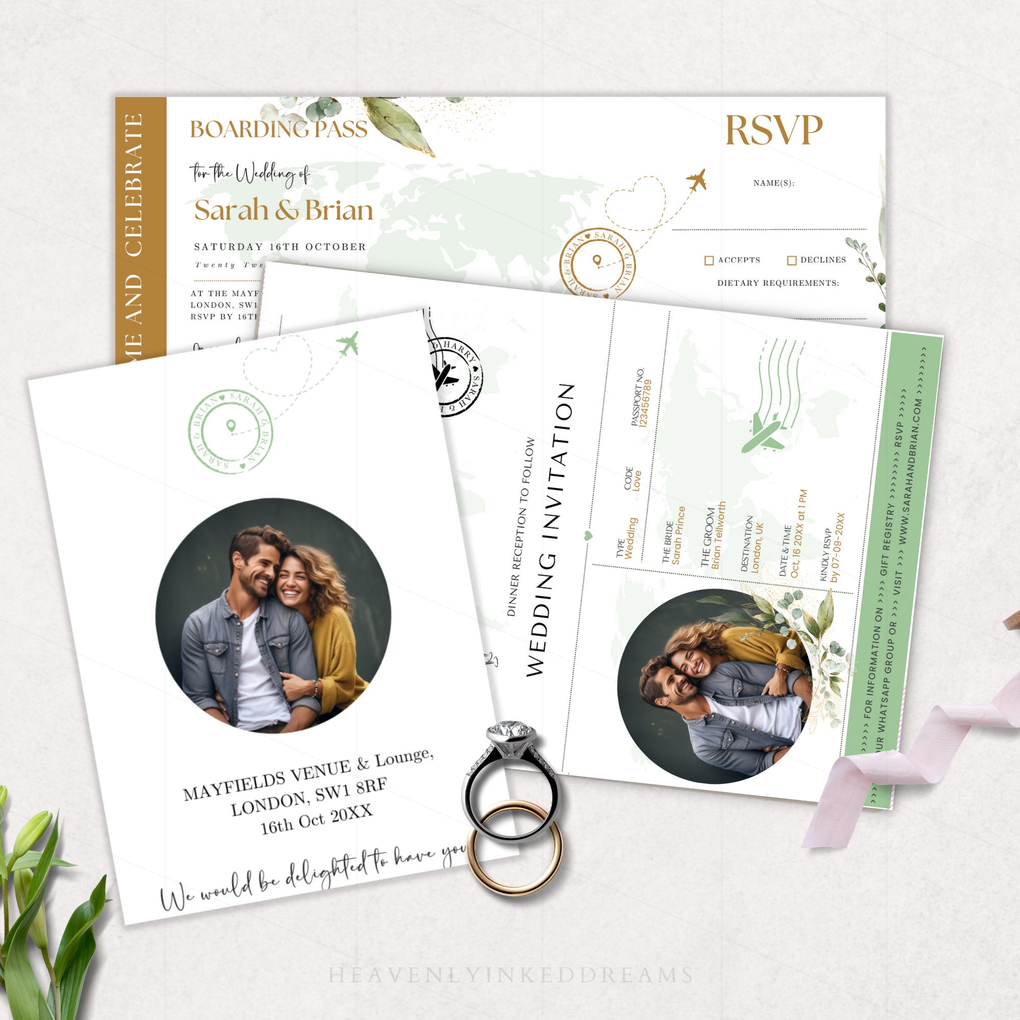 Passport Wedding Invitation Template Editable Greenery Wedding
