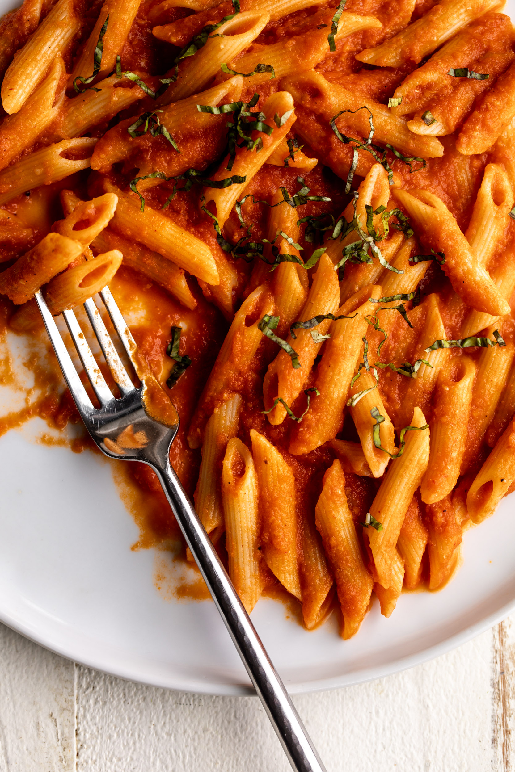 Creamy Vegan Roasted Red Pepper Pasta healthienut