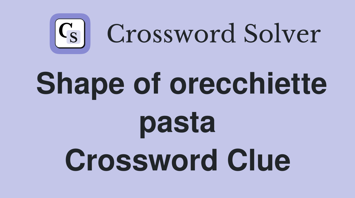 Shape of orecchiette pasta Crossword Clue Answers Crossword Solver