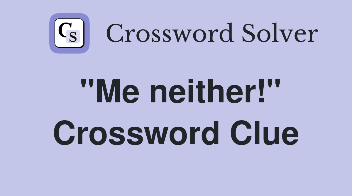 quot Me neither quot Crossword Clue Answers Crossword Solver