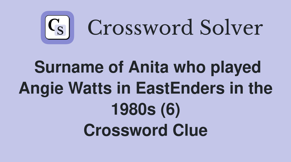 Surname of Anita who played Angie Watts in EastEnders in the 1980s (6