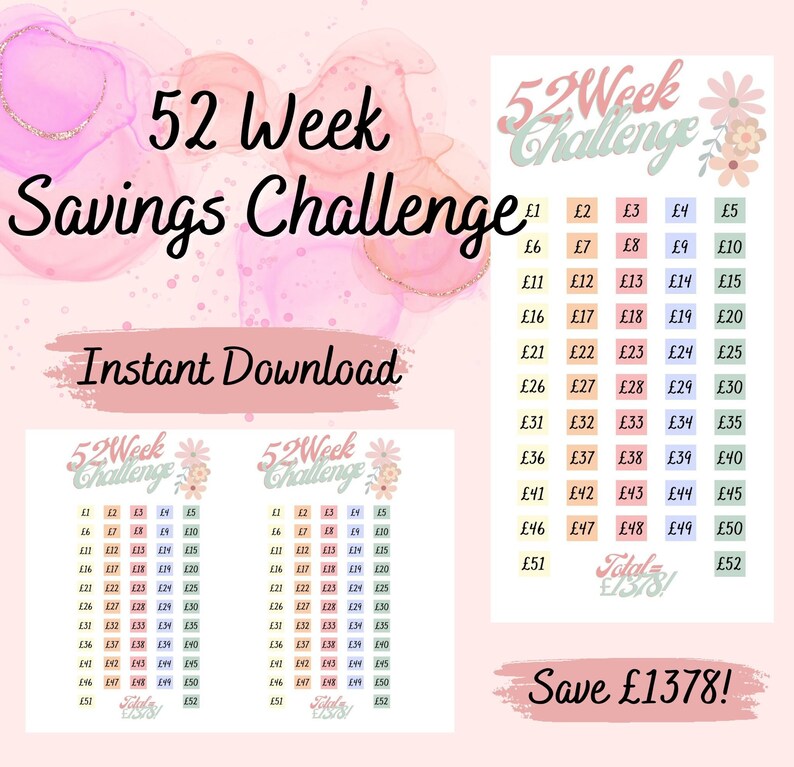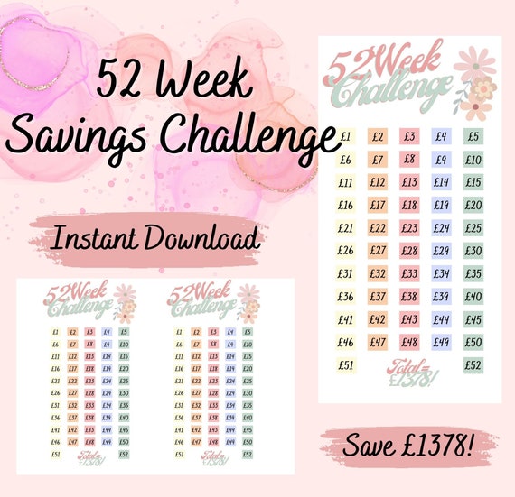 PDF 52 Week Savings Challenge Pastel Rainbow Printable Etsy UK
