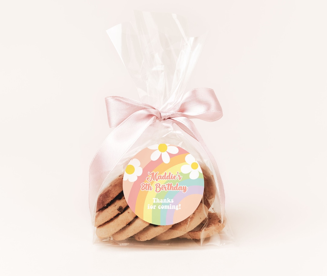 Daisy Rainbow Birthday Party Round Labels / Pastel Rainbow Printable