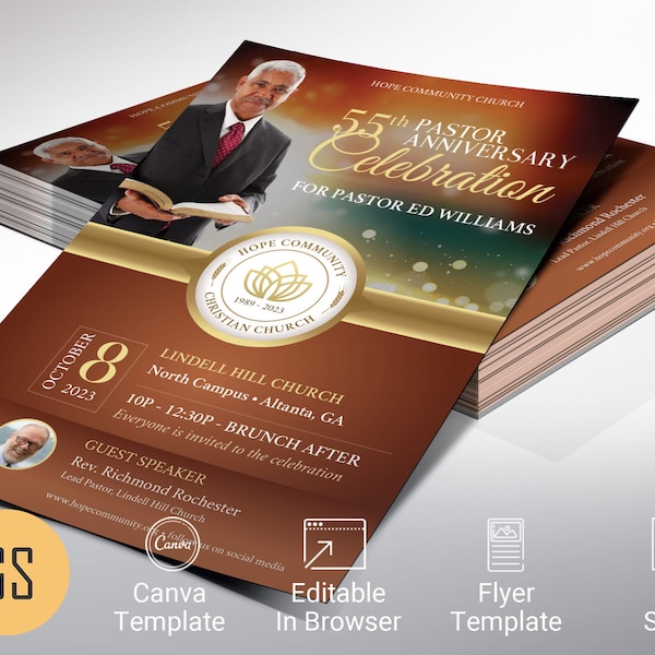 Pastor Anniversary Flyer Template for Canva :: Behance