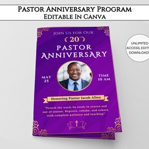 Pastor Anniversary Program Template Editable 8 Pages Pastor