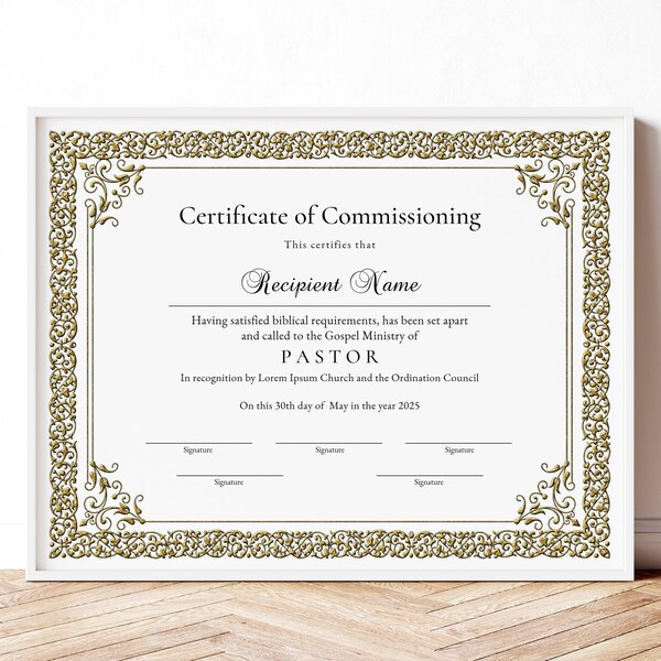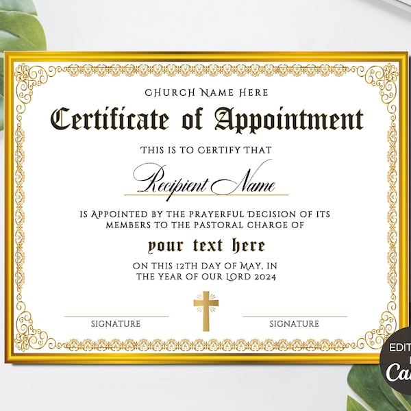 Editable Certificate of Pastor Appointment Editable With Etsy