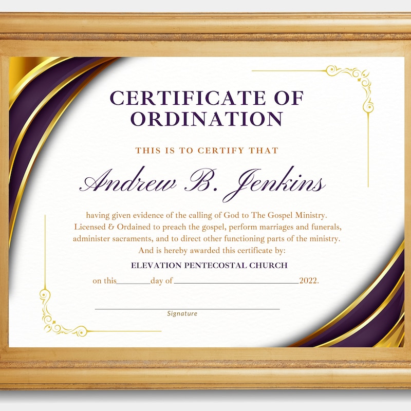 Free Church Pastor Ordination Certificate Template to Edit Online