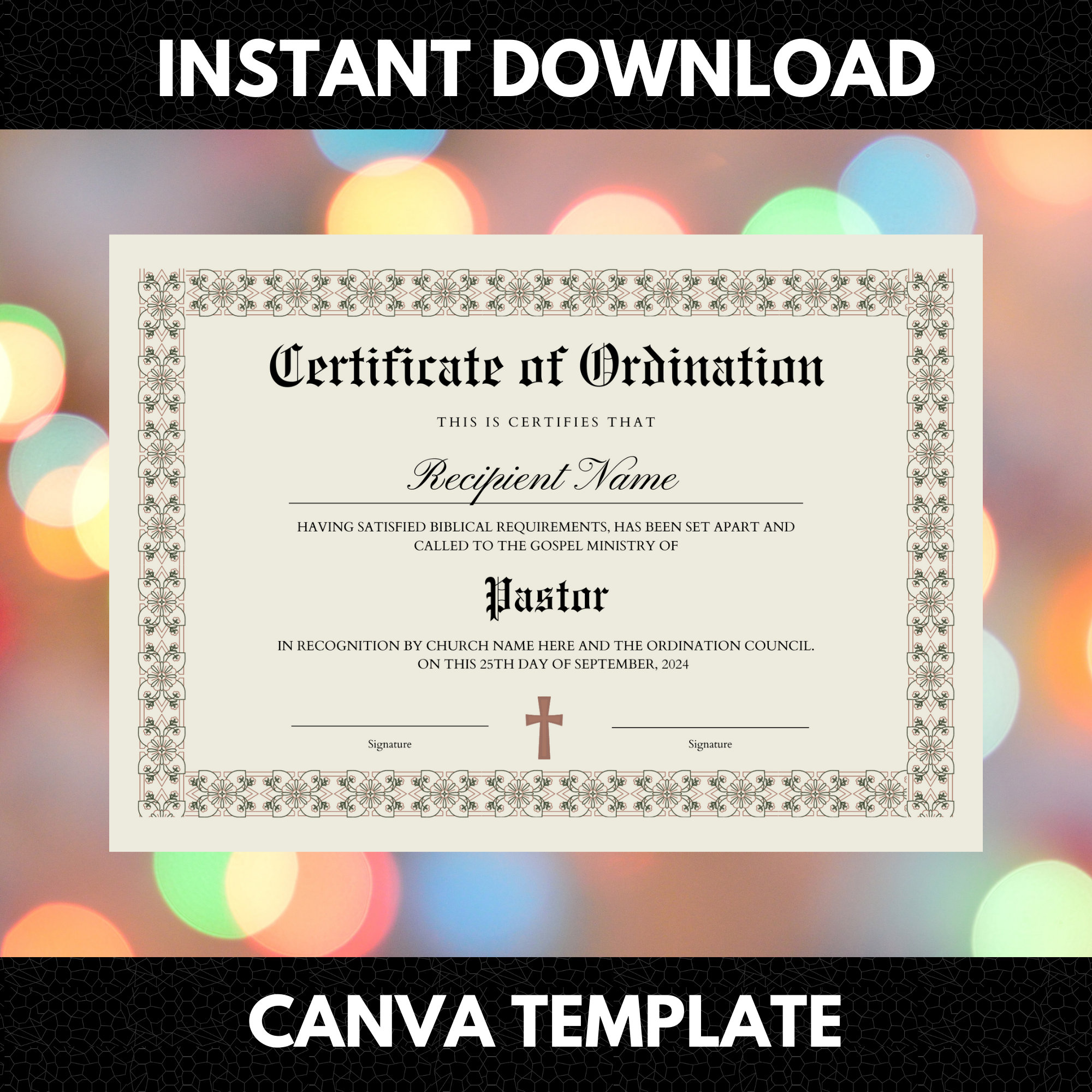Editable Pastor Ordination Certificate Template (digital Download) Etsy