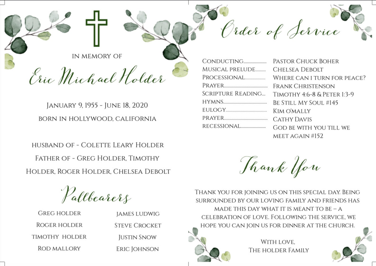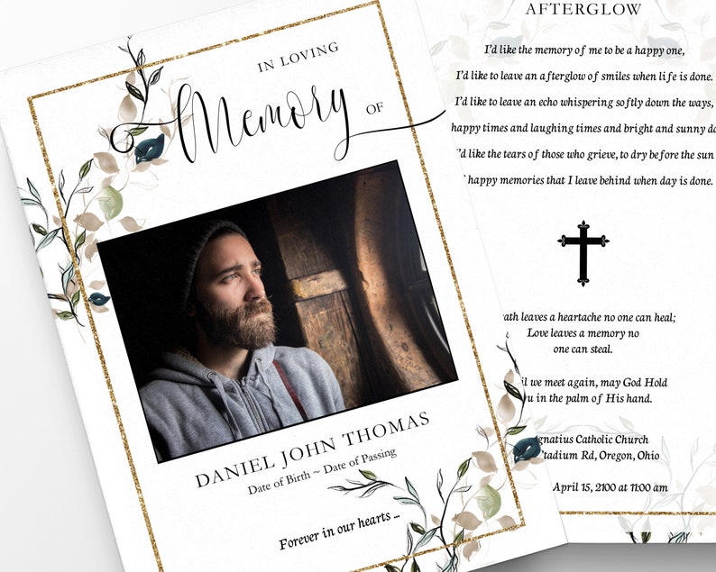 Greenery Funeral Program Template Men #39 s Greenery Memorial Etsy