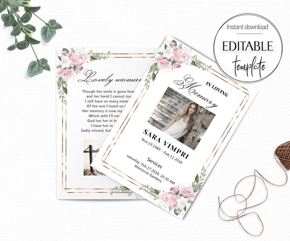 Funeral Program Template Funeral Poems Funeral Programs Etsy