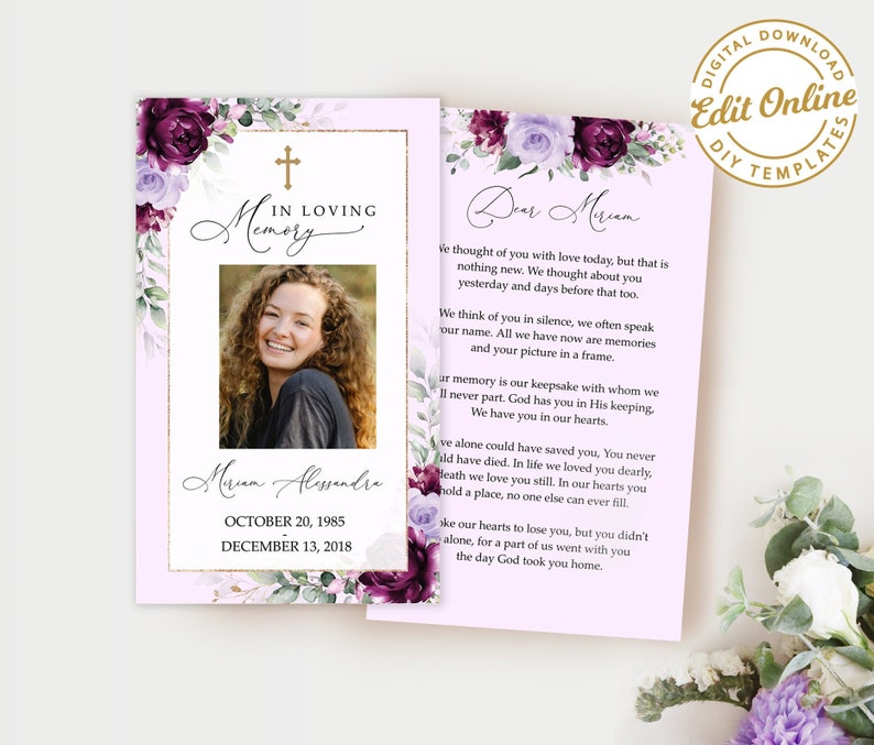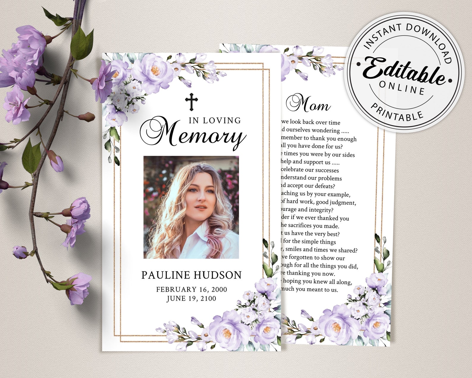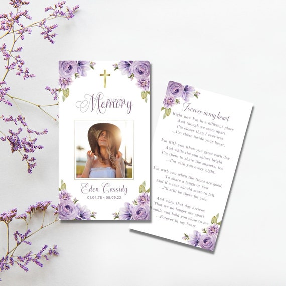 Purple Floral Prayer Card Template Funeral Favor Christian Etsy Canada