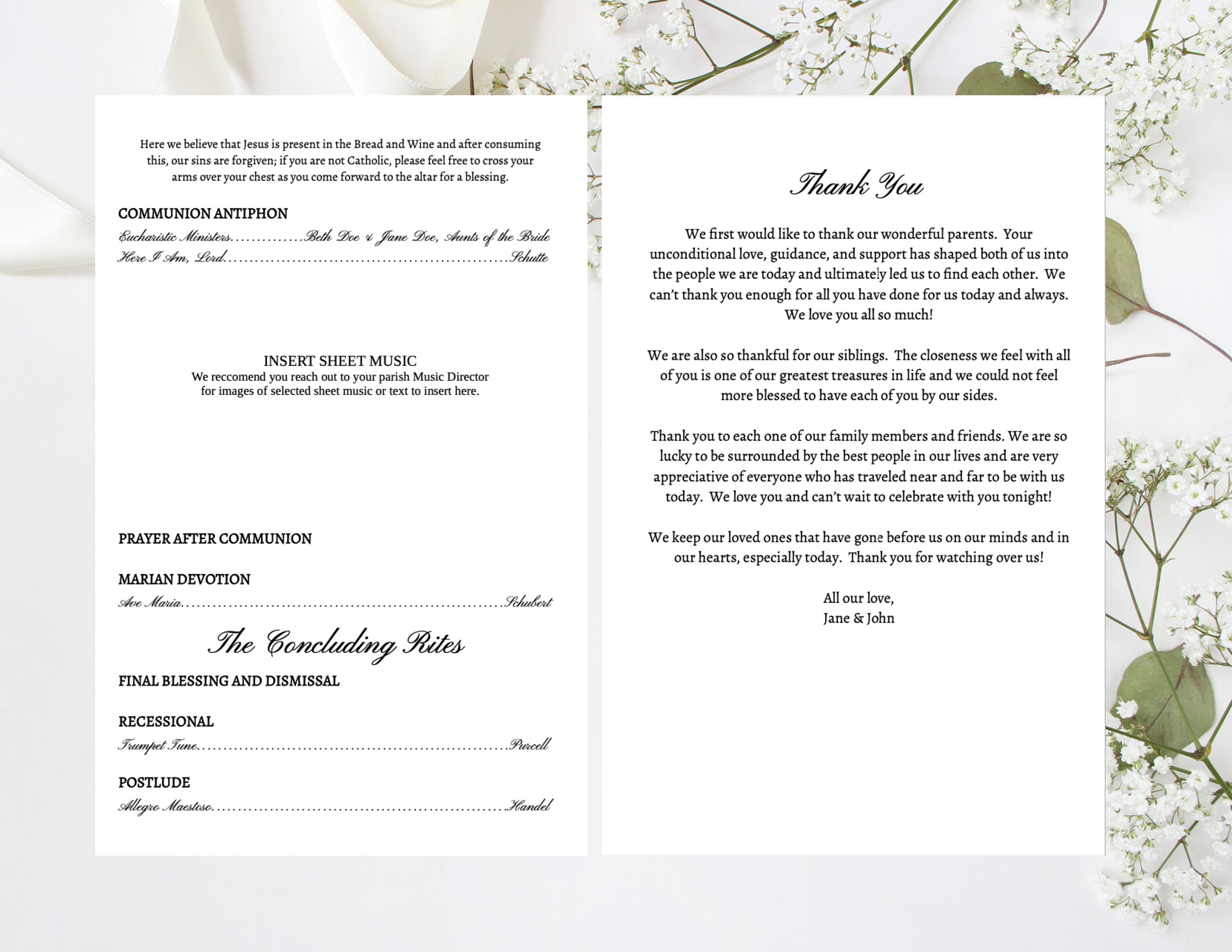 Catholic Wedding Program Template Custom Nuptial Mass DIY Etsy