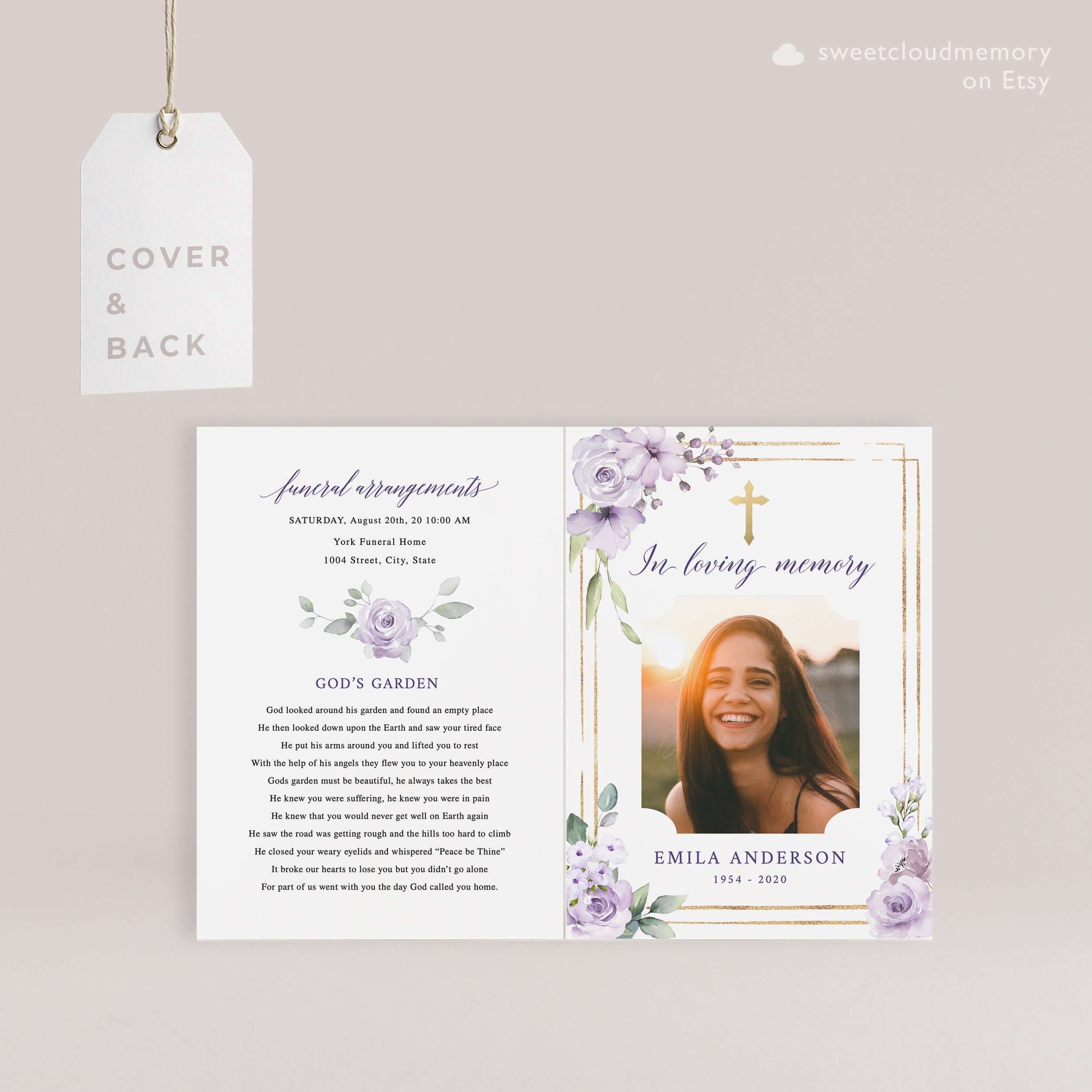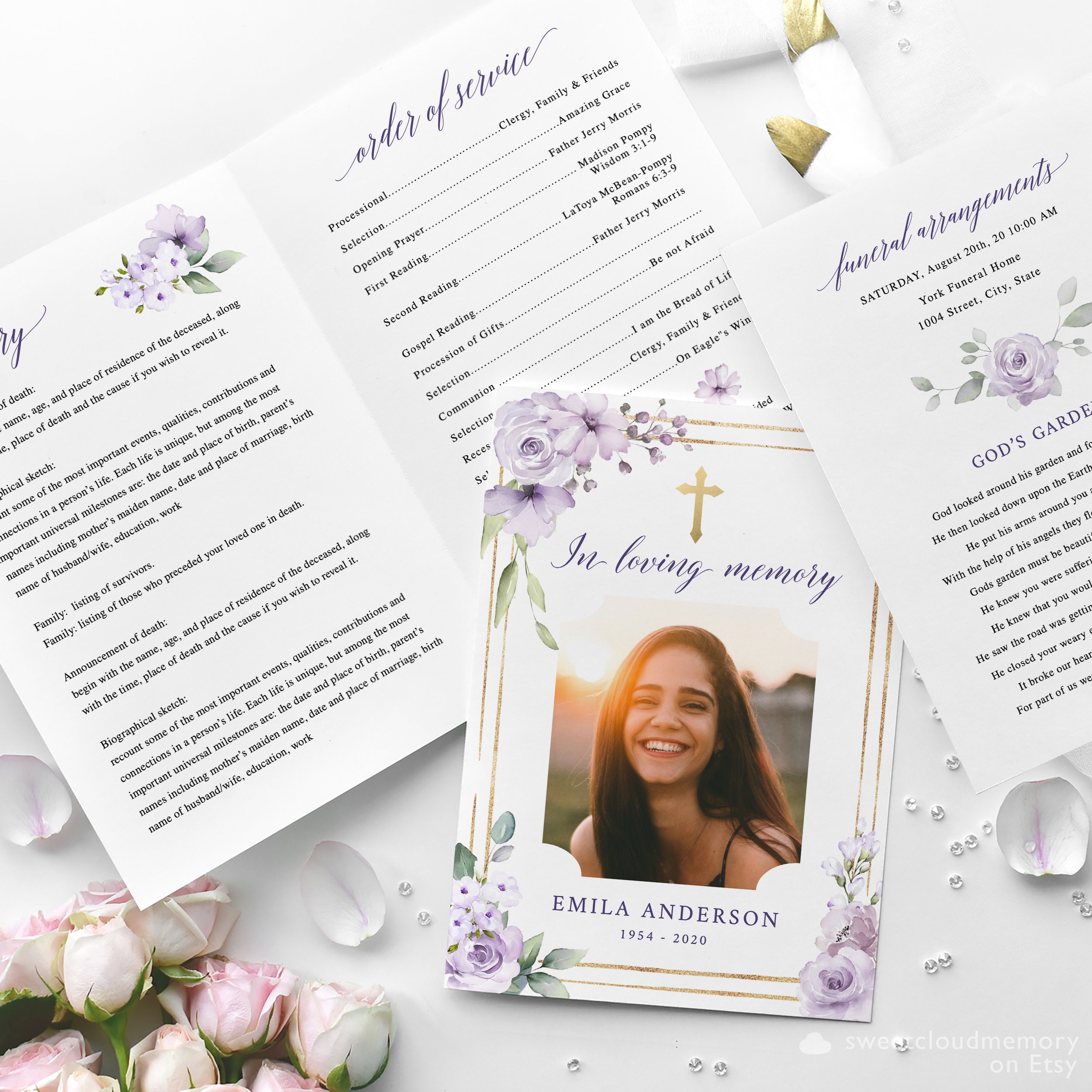 Gold Cross Violet Funeral Program Template Purple Floral Etsy Canada