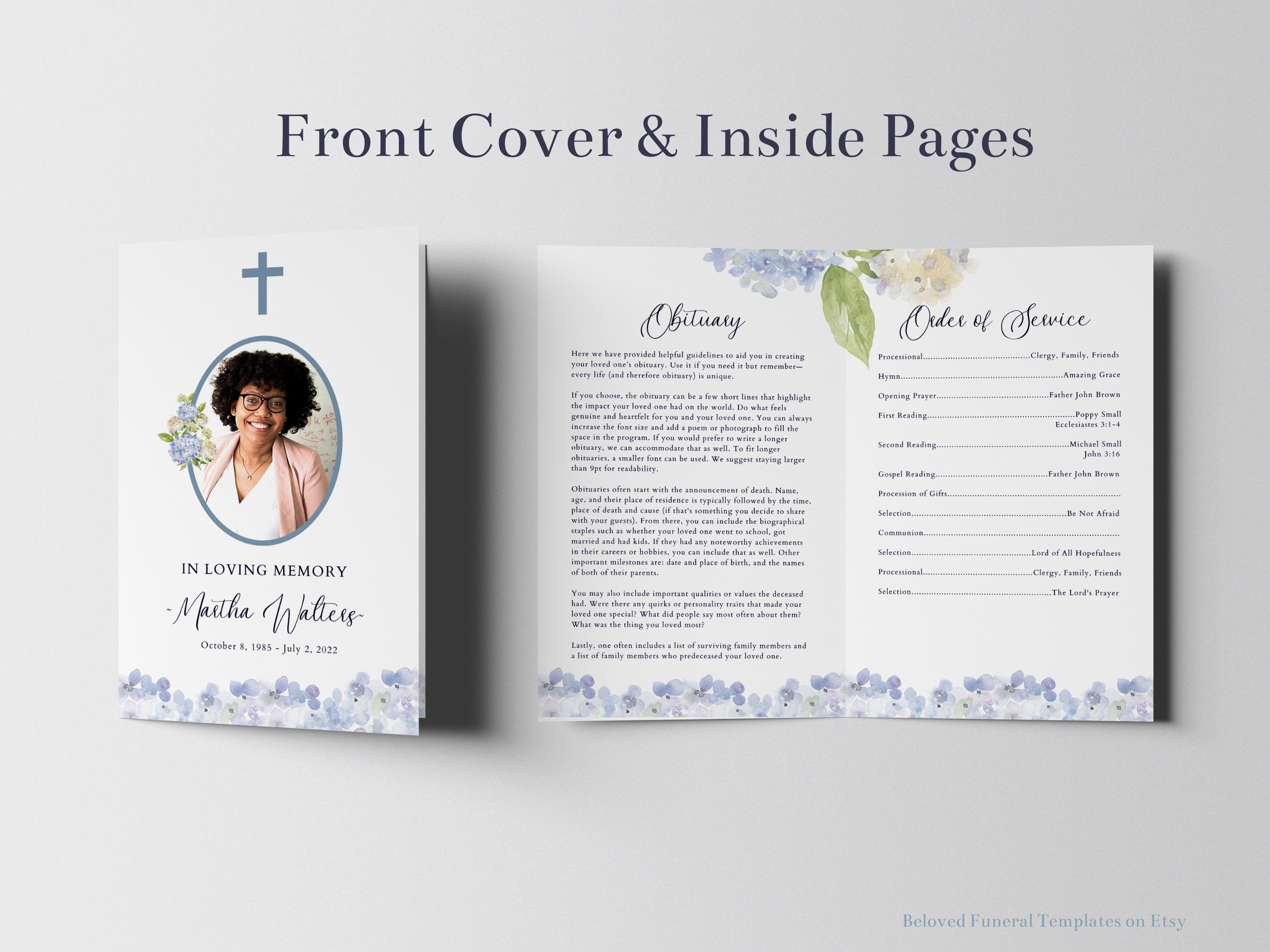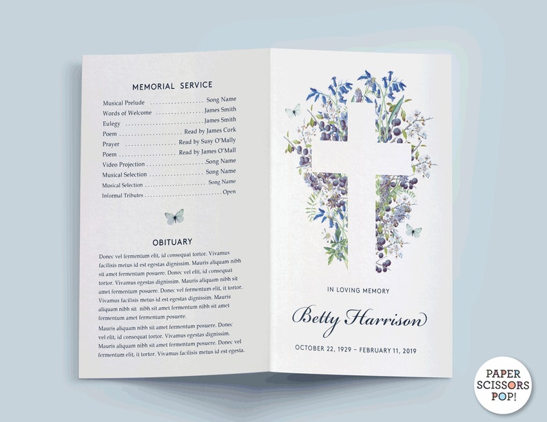 Feminine Funeral Program Blue Flowers Memorial Card Etsy New Zealand