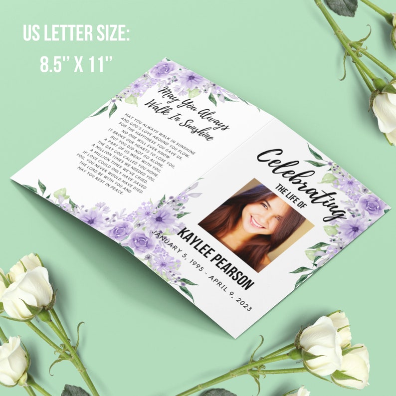Editable Funeral Program Template Purple Floral in Loving Memory