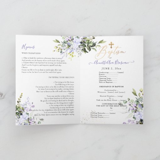 Watercolor Purple Eucalyptus LDS Baptism Program Zazzle