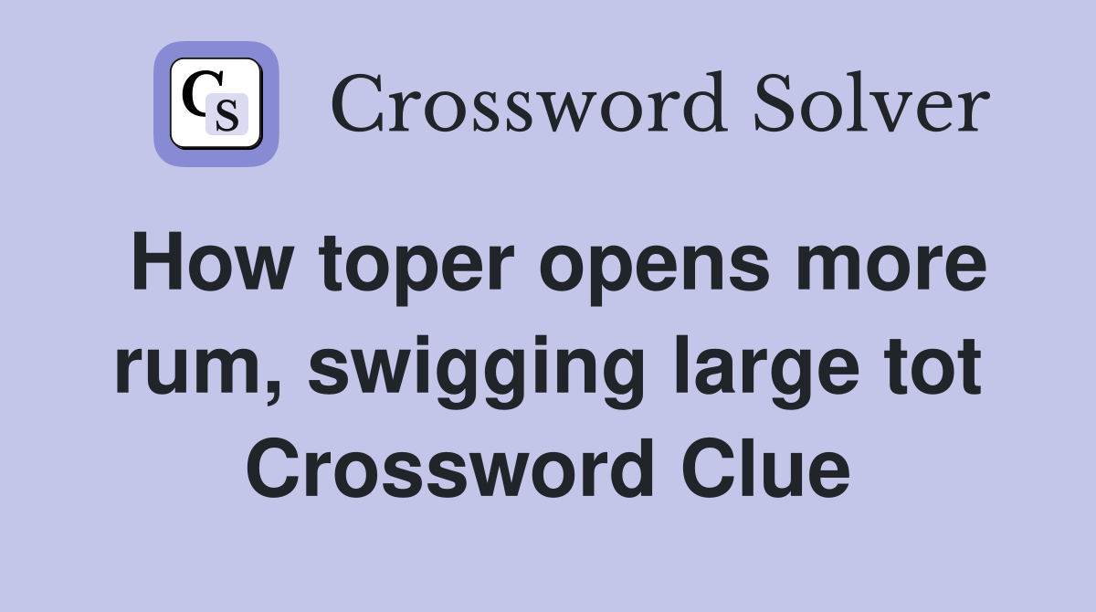 How toper opens more rum swigging large tot Crossword Clue Answers