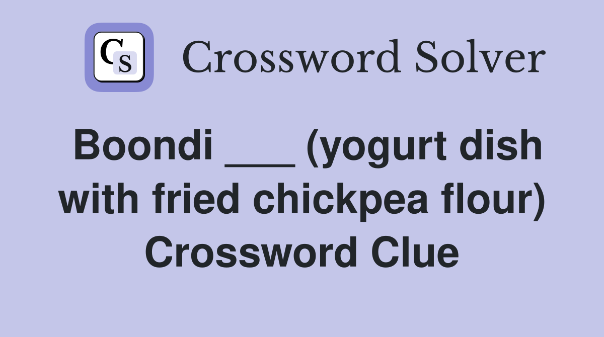 Boondi (yogurt dish with fried chickpea flour) Crossword Clue