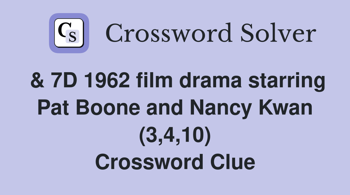 See 8 Across: 1962 film drama starring Pat Boone and Nancy Kwan (3 4 10