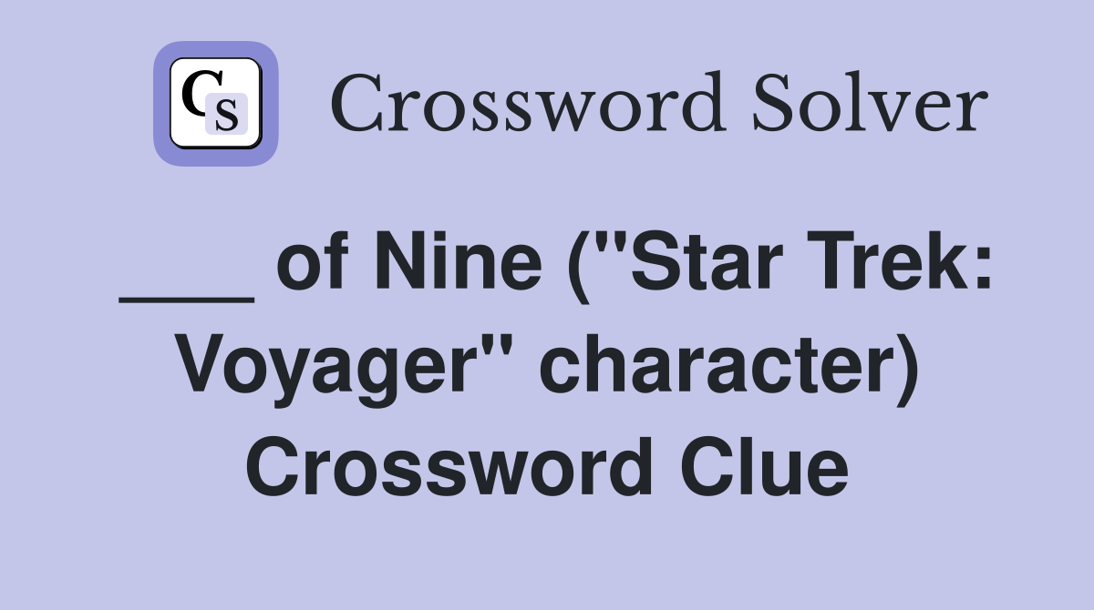 of Nine ( quot Star Trek: Voyager quot character) Crossword Clue Answers