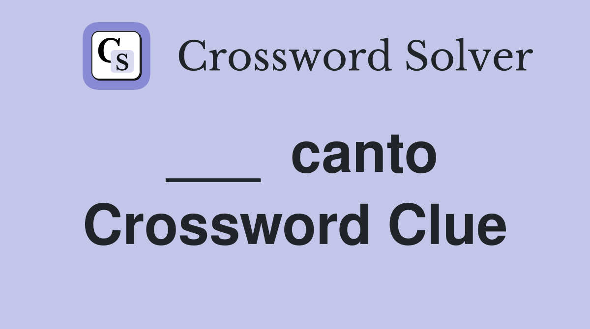 Here are some of the images for Patchetts Canto Crossword Clue that we found in our website database.